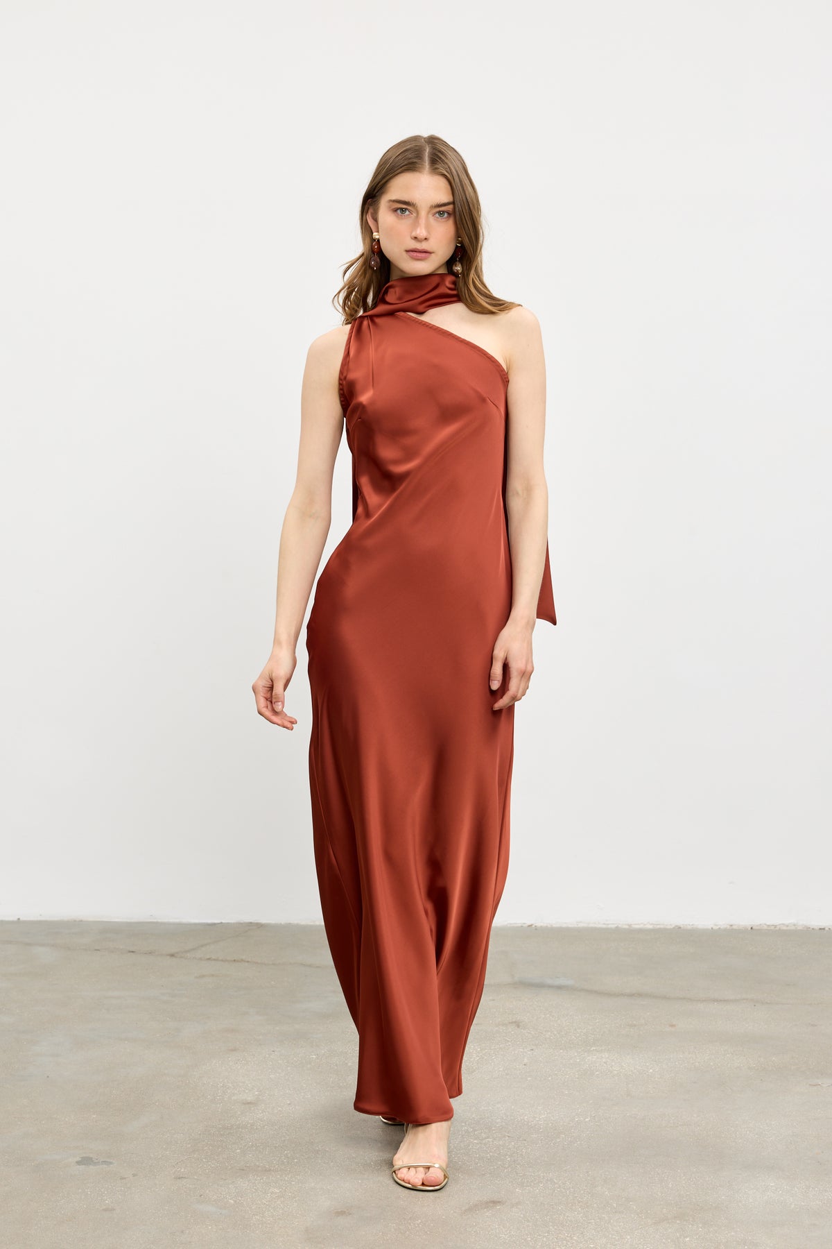 השמלה גזורה בטכניקת אלכסון אשר מאפשרת נפילה מחמיאה ומרשימה של הבד על הגוף, עשויה בד סאטן משי איכותי ולא מתקמט